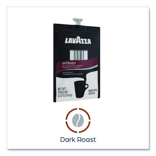 The Lavazza Intenso Dark Roast Coffee features a bold flavor with perfectly balanced smoky and caramelized flavor notes. Our dark roasting process enhances the body while finishing the taste experience with a hint of chocolate flavor notes. This traditional blend of Arabica and Robusta coffees, mainly from South-East Asia and South America, delivers a uniquely Italian coffee aroma. Our brewing process, where nothing touches the ingredients other than hot water, ensures your drink does not taste like previous brews. Compatible with FLAVIA® single-serve brewers. For single-serve sustainability, innovative pouches are 100 percent recyclable through Terracycle. Beverage Type: Coffee; Flavor: Intenso; Roast Type: Dark Roast; Product Packaging: Pouch.
