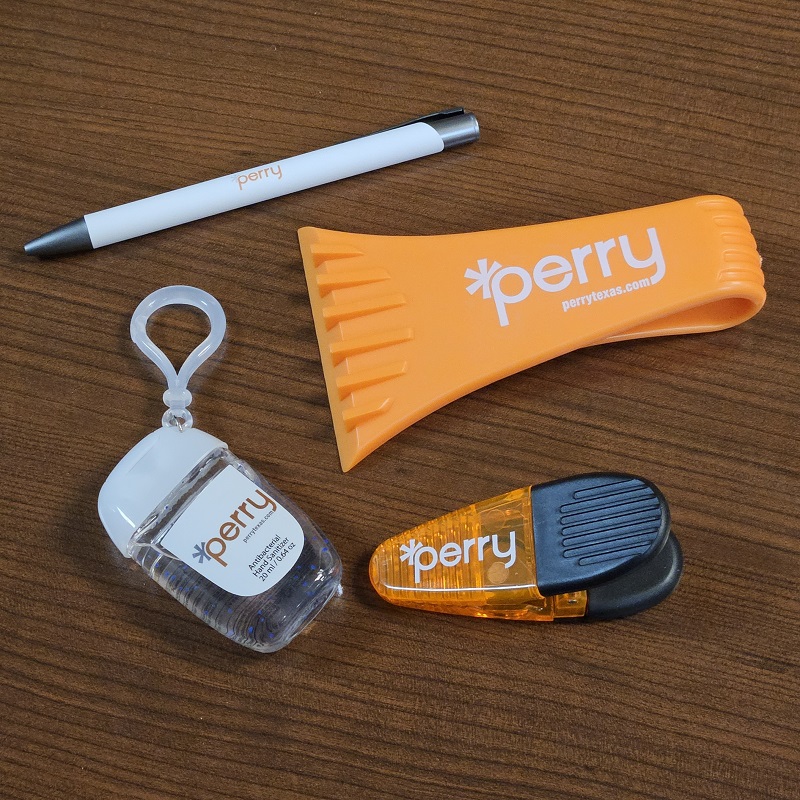 Choosing promotional products can be overwhelming with the vast amount of choices, but our team is skilled in helping you find items that fit your needs and budget! Get started by browsing promosbyperry.com or contacting our team at promos@perrytexas.com.