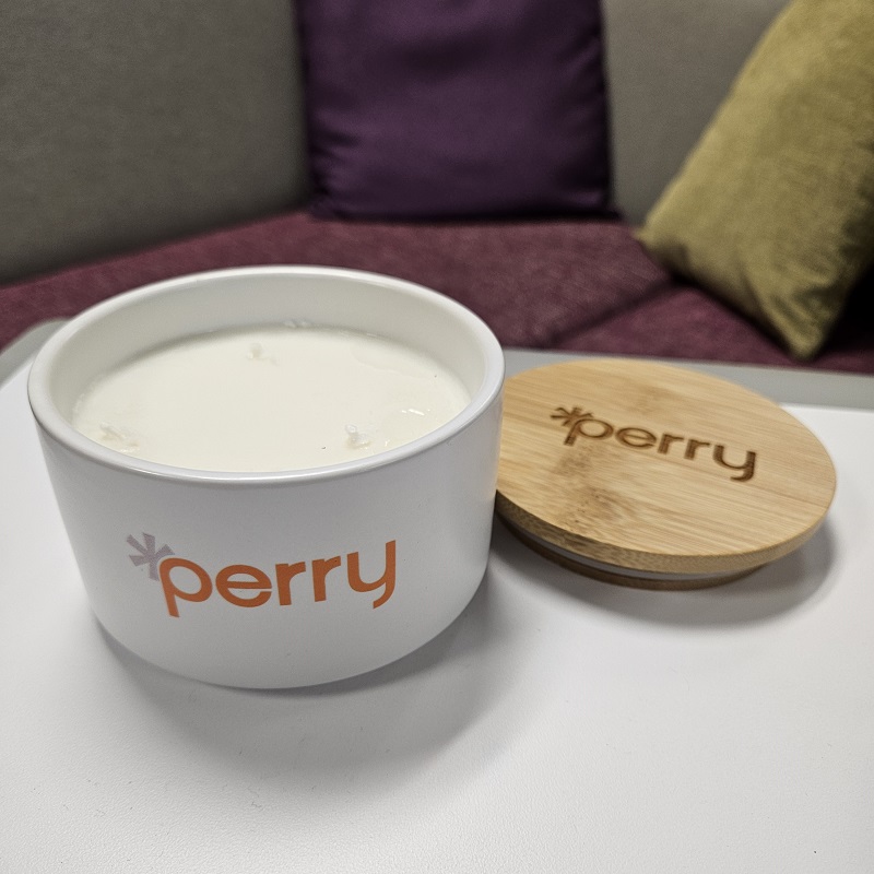 Perry kicked off 2025 with a brand refresh, which means we spent the months leading up to the new year selecting handouts and gifts for ourselves! Not only did this include promotional products (like pens, power clips, journals, drinkware, etc.), we also needed to have all of our custom printing redone, from envelopes to business cards, and update all our uniform apparel.